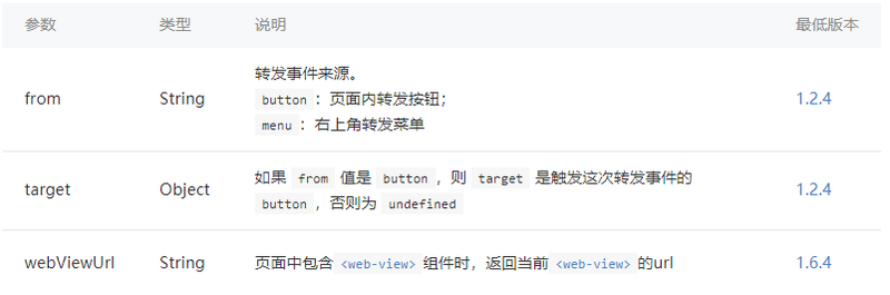 监听用户点击页面内转发按钮(<button> 组件 open-type="share")或右上角菜单“转发”按钮的行为,并自定义转发内容。注意:只有定义了此事件处理函数,右上角菜单才会显示“转发”按钮