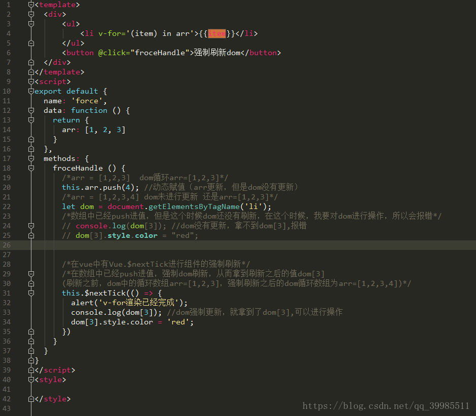 在开发过程中,有时候会遇到这么一种情况,通过动态的赋值,但是dom没有及时更新,能够获取到动态赋的值,但是无法获取到双向绑定的dom节点,这就需要我们手动进行强制刷新组件。