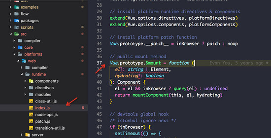 第二个定义 $mount 函数的地方是src/platforms/web/entry-runtime-with-compiler.js 文件,这个文件是完整版Vue(运行时+编译器)的入口文件。