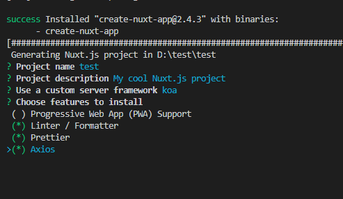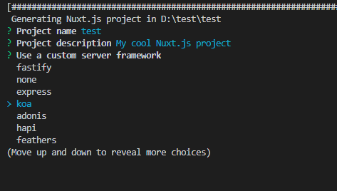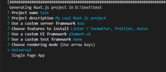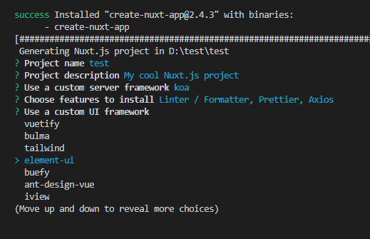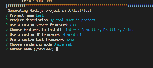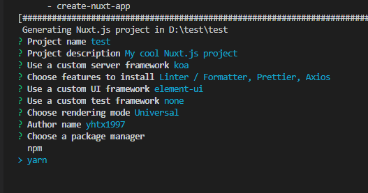 npx create-nuxt-app <项目名> #或者用yarn yarn create nuxt-app <项目名>