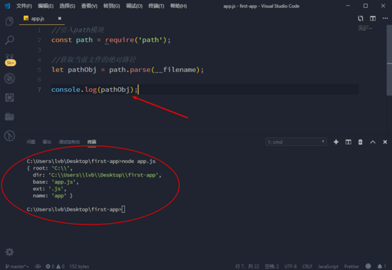 回到编辑器,引入 path 模块