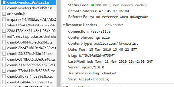 这步就很简单了只需要查看chunk类文件的Response Headers的Content-Encoding是否是gzip即可
