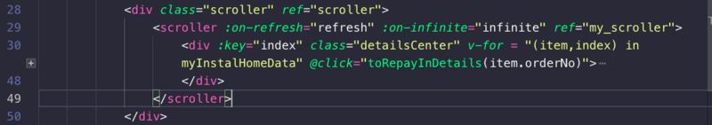 (1)高度的问题,这个插件需要给外层的scroller 设置高度,所以要注意,我这里是这样操作的: