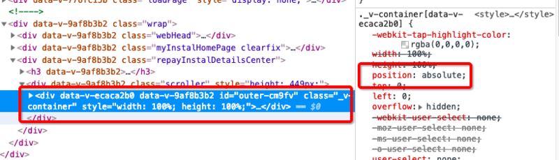 (2)vueScoller 内部的结构是绝对定位,所以一定要给外层设置好相对定位;