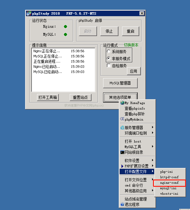 利用phpstudy,可以很方便的进行nginx相关设置、host修改、端口监控等等。先来说说nginx-conf的配置。