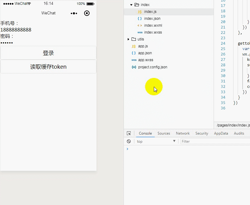以手机号+密码登录为例,把登录成功返回的token值存储在本地缓存中,然后读取缓存中的token: