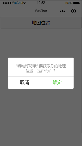 点击获取位置按钮,首次调用需要获得用户的scope.userLocation授权: