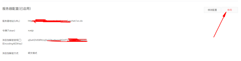 将以上代码部署到服务器上就可以了,在微信配置界面点击提交就会显示提交成功了,提交成功后一定要点击右上方的启用按钮