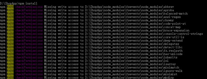 npm ERR! path D:\ShopApp\node_modules\fsevents\node_modules\abbrev