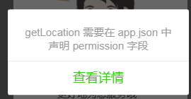 小程序getLocation需要在app.json中声明permission字段,个别需要获取用户地理位置的在开发者工具调试时会出现getLocation需要在app.json中声明permission字段 提示,如下图: