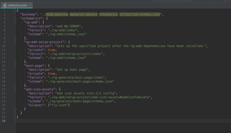 先把 Angular Schematic这篇文章读一遍,确保了解了collection等基础