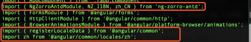 // 最核心的要在app.module中加入registerLocaleData(zh);才能把本地化做到angular上面