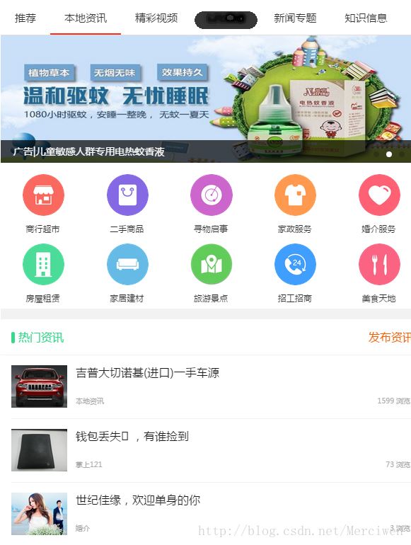 因为使用了vue.js 每个分类的样式不一样,而且分类是可以配置的。所以呢,想到了单页面应用,所以选择了vue-router.js的路由。也使用了vue.resource 插件用来做数据传输。