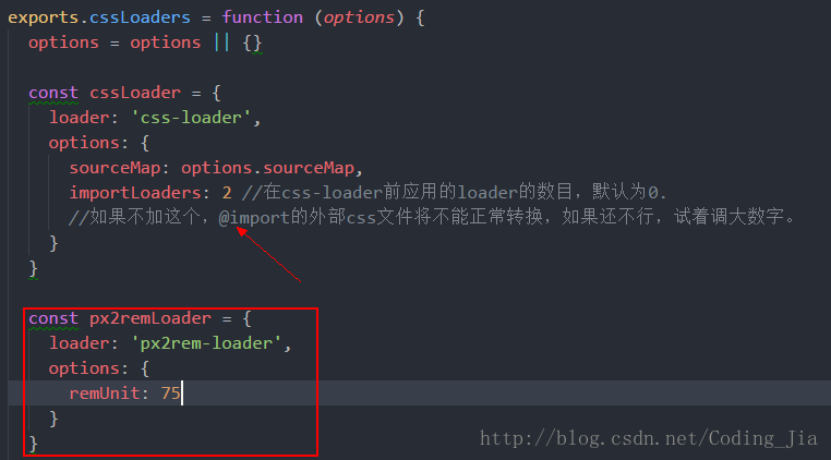 3.如果每次从设计稿量出来的尺寸都手动去计算一下rem,就会导致我们效率比较慢,还有可能会计算错误,所以我们可以使用px2rem-loader自动将css中的px转成rem