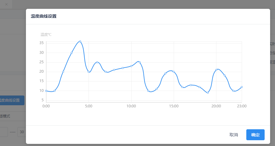 代码解释:setTem是一个方法,改变modal为true,默认为false ; chart-line是图表子组件,通过data向其传递参数,data绑定的数据是父组件mounted后拿到的数据