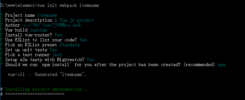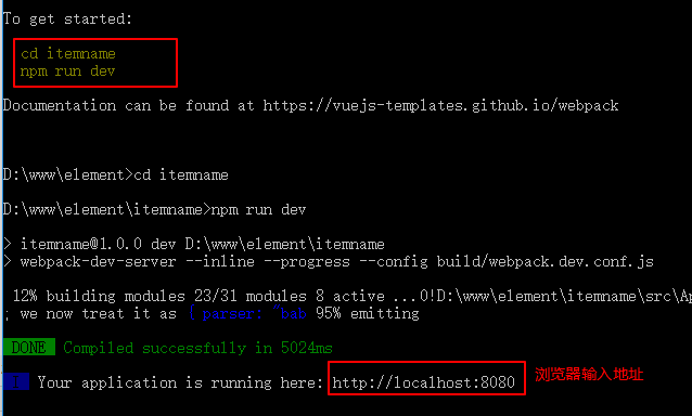 输入命令:vue init webpack itemname