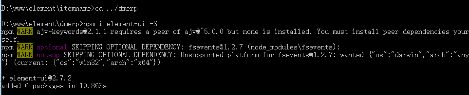 输入命令:npm i element-ui -S