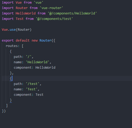 然后在路由中引入test.vue,路由位置:src/router/index.js,代码如下: