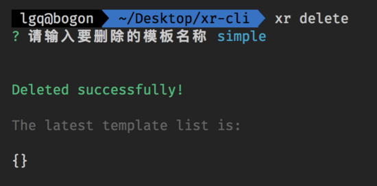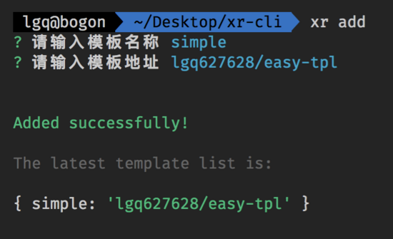 这个文件主要目的就是添加模板并存储起来,上面的注释应该都写的挺清楚了。我们执行 xr add 来看看效果:
