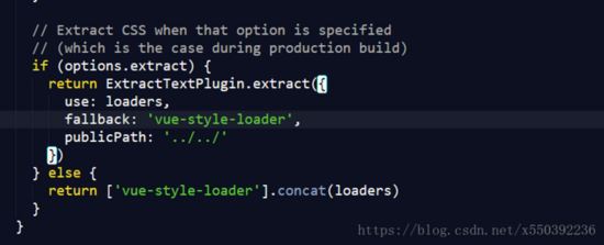 页面中用background加载的图片可以正常显示,但是所有的字体图标都不能正常显示,解决方法:打开根目录下build中的 utils.js 文件,在控制build样式文件代码中添加 publicPath: ‘../../‘ ,如下:
