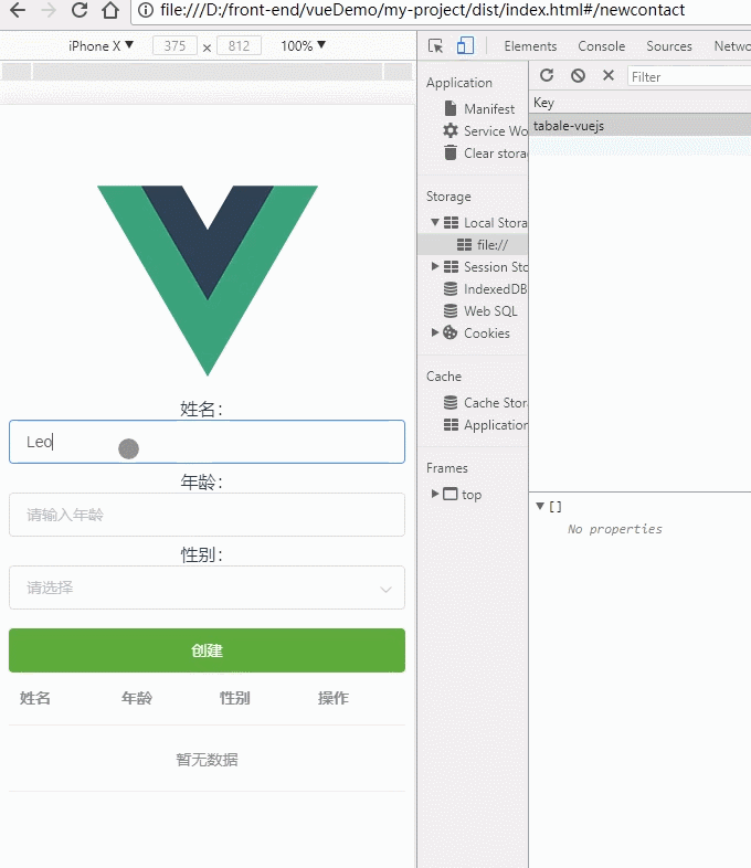 当我们添加删除数据时,可以打开chrmoe浏览器的F12>Application>Local Storage进行查看