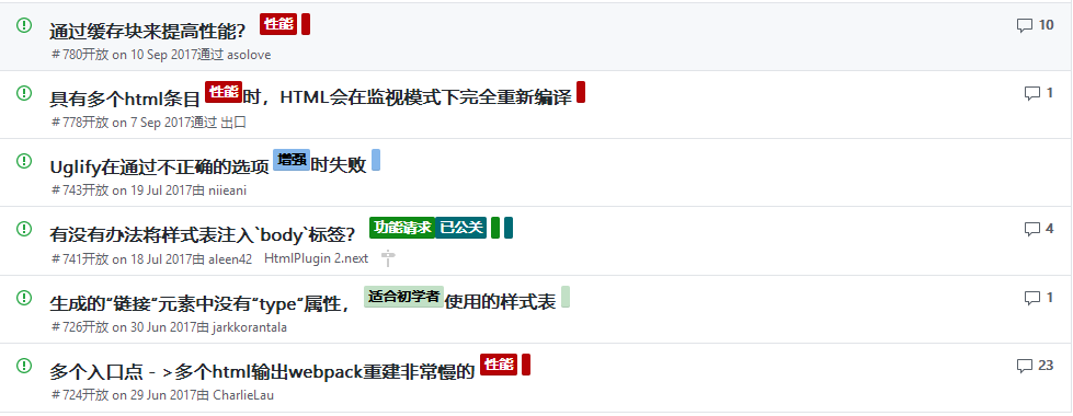 难道是我的html-webpack-plugin配置有问题吗,于是我在网上寻找解决办法,做了各种尝试,直到我找到html-webpack-plugin的github上放弃寻找了,原来插件作者有发布几十条lssues(链接https://github.com/jantimon/html-webpack-plugin/issues),其中就包括该插件的多页面性能问题。