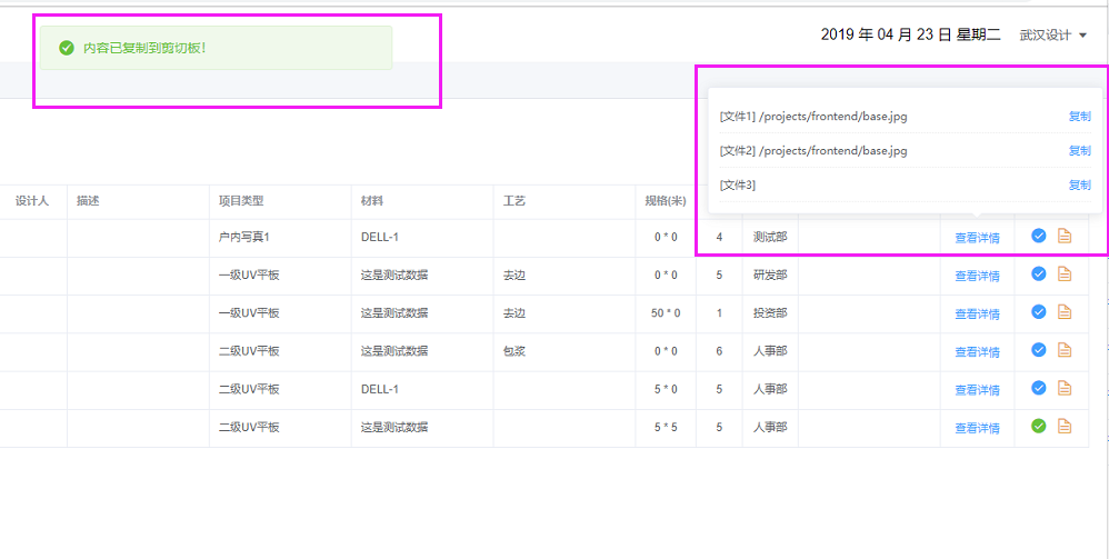 通过这段示例代码能看到,复制动作使用的是VUE响应函数方式,这就为复制前控制数据提供了可能!