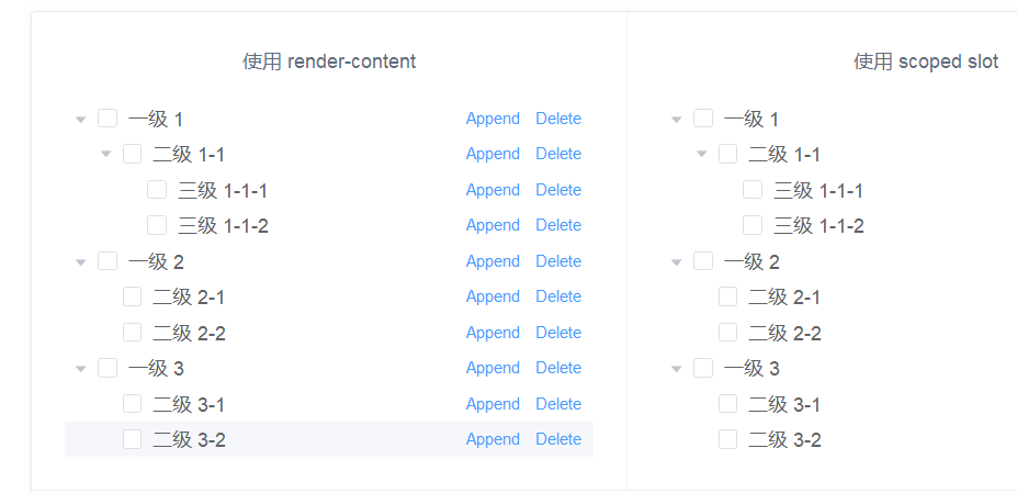 | render-content | 树节点的内容区的渲染 Function | Function(h, { node, data, store } | — | — |