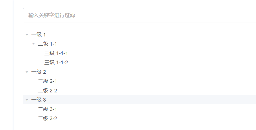 | filter-node-method | 对树节点进行筛选时执行的方法,返回 true 表示这个节点可以显示,返回 false 则表示这个节点会被隐藏 | Function(value, data, node) | — | — |