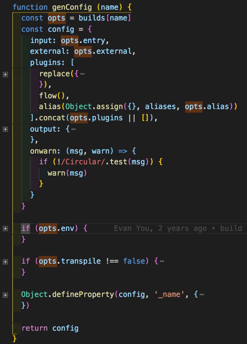 可以看出,builds对象是不同版本vue的编译配置。具体配置项的作用,已经用注释在代码中标出。接下来我们看下genConfig函数做了什么。