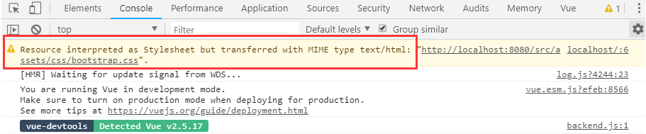 控制台warning(Resource interpreted as Stylesheet but transferred with MIME type text/html)