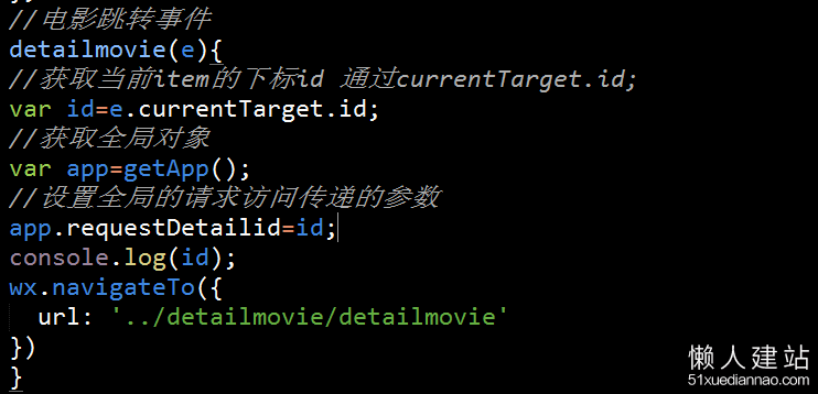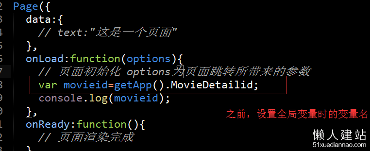 var movieid=getApp().MovieDetailid; console.log(movieid);