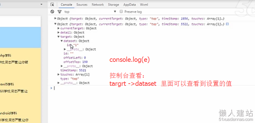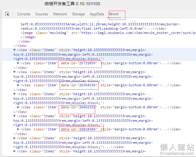 提示:其实我们也可以在,wxml中查看到我们设置的每一个item的id值