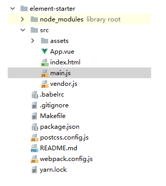 ① 使用 git 命令git clone https://github.com/ElementUI/element-starter.git下载官方提供的模板,
