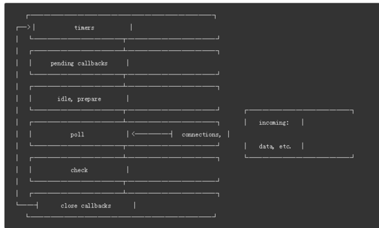 关于事件循环, 是指JS在每次执行完同步任务后会检查执行栈是否为空, 是的话就会去执行注册的事件列表, 不断的循环该过程。Node中的事件循环有六个阶段: