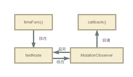 在 nextTick 中 MutationObserver 的作用就如上图所示。在监听到DOM更新后,调用回调函数。