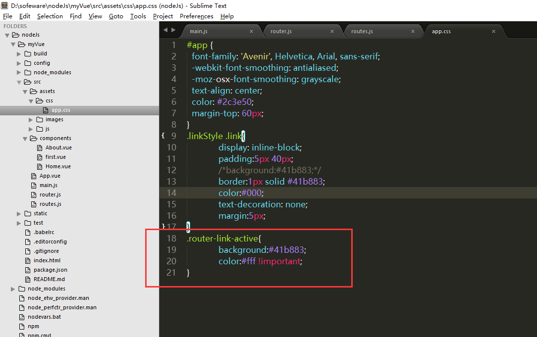 ----.router-link-active这个class,是当路由path指向当前组件时自动生成的,可以在此处设置样式(选中状态)