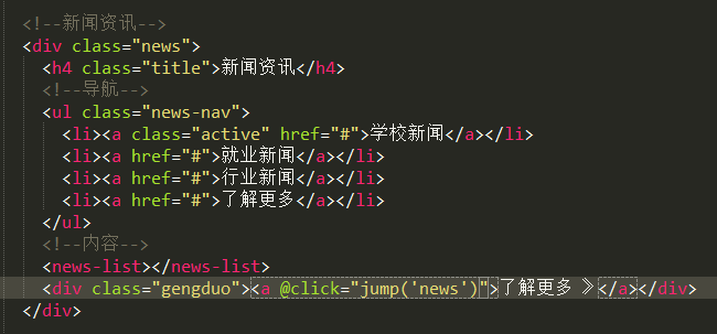 现在在这个页面里点击了解更多的时候跳转到新闻资讯页面,然后然后state里的值,然后改变当前的url以及导航选中新闻资讯。