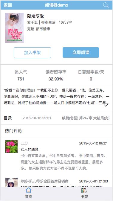 3、书籍详情book.vue加入书架、立即阅读,展示评论,同类书籍推荐
