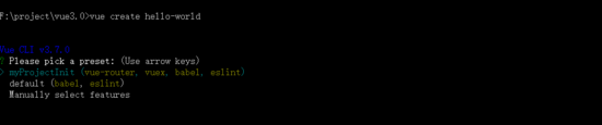 vue create hello-world (搭建一个项目名称为 hello-world 的vue前端项目)