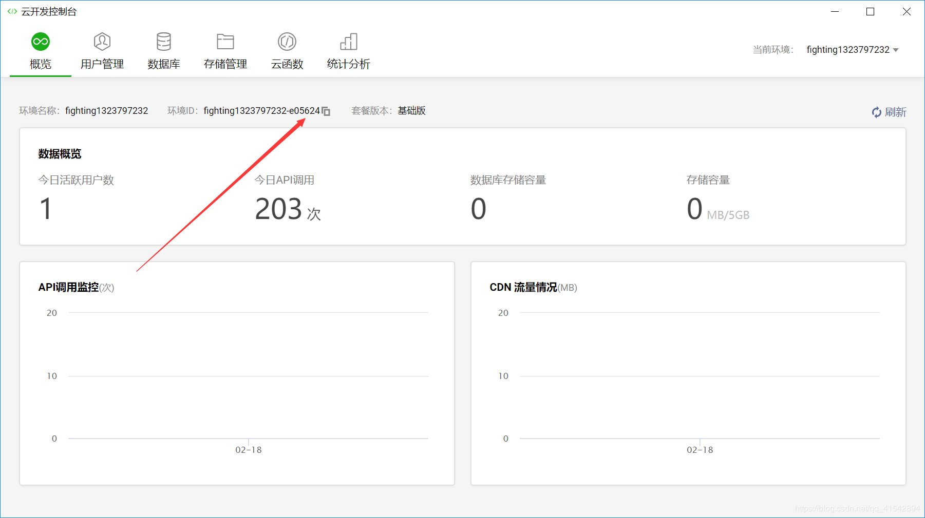 下面的fighting1323797232-e05624就是我们云开发的环境id