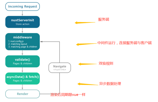 中间件允许您定义一个自定义函数运行在一个页面或一组页面渲染之前。每一个中间件应放置在 middleware/ 目录。文件名的名称将成为中间件名称(middleware/auth.js将成为 auth 中间件)。在 nuxt.config.js 、 layouts 或者 pages 中使用中间件: eg:在nuxt.config.js
