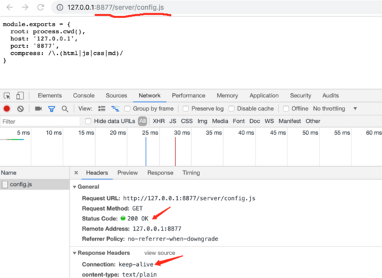 运行 server 服务器访问一个文件,可以看到 Content-Type 修改了: