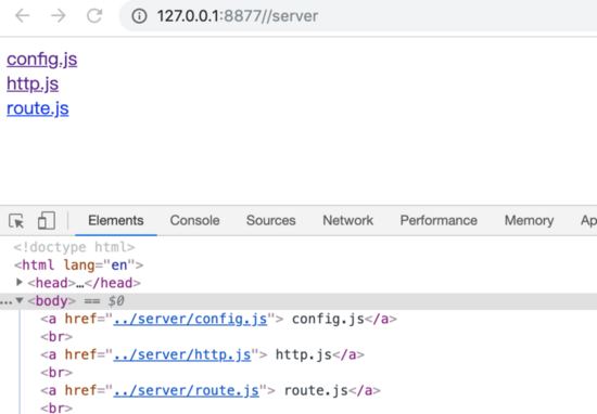 再次执行 $ node server/http.js 如果是文件夹则显示目录: