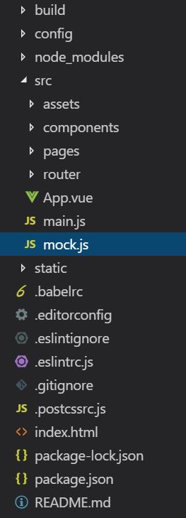 在项目中新建mock.js文件夹,来设置要产生的模拟数据的格式。