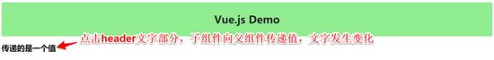 接下来我们通过一个例子,说明子组件如何向父组件传递值:当我们点击“Vue.js Demo”后,子组件向父组件传递值,文字由原来的“传递的是一个值”变成“子向父组件传值”,实现子组件向父组件值的传递。