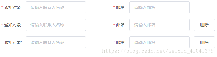 <el-form-item class="rules" label="通知对象:" :prop="'moreNotifyObject.' + index +'.notifyobject'" :rules="moreNotifyOjbectRules.moreNotifyOjbectName"> <el-form-item class="rules" label="邮箱:" :prop="'moreNotifyObject.'+ index +'.email'" :rules="moreNotifyOjbectRules.moreNotifyOjbectEmail">