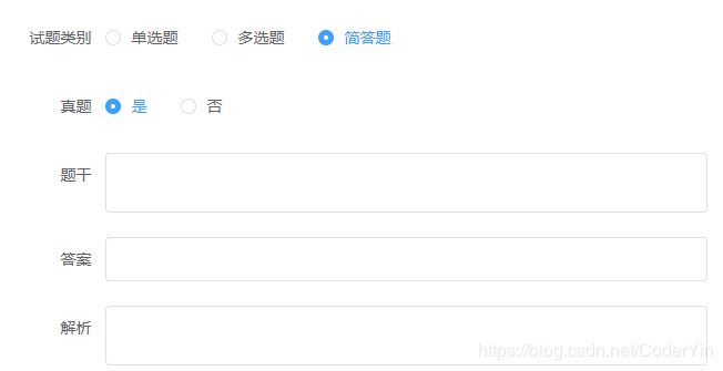 2、在用户选择简答题时只会题干,答案以及解析选项(主要是通过v-if来进行判断)
