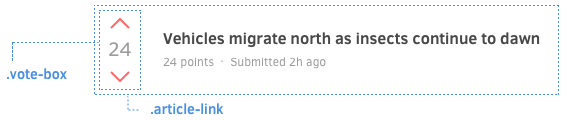 <div class="article-link"> <div class="vote-box"> ... </div> <h3 class="title">...</h3> <p class="meta">...</p> </div>