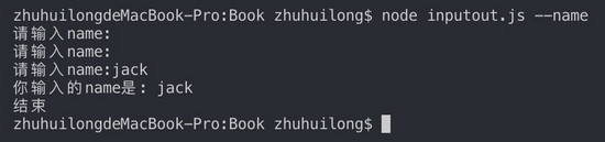 node argv.js --name zhu ## 输出 [ '/usr/local/bin/node', '/Users/zhuhuilong/Node/Book/argv.js', '--name', 'zhu' ] hello zhu param [ '--name', 'zhu' ]